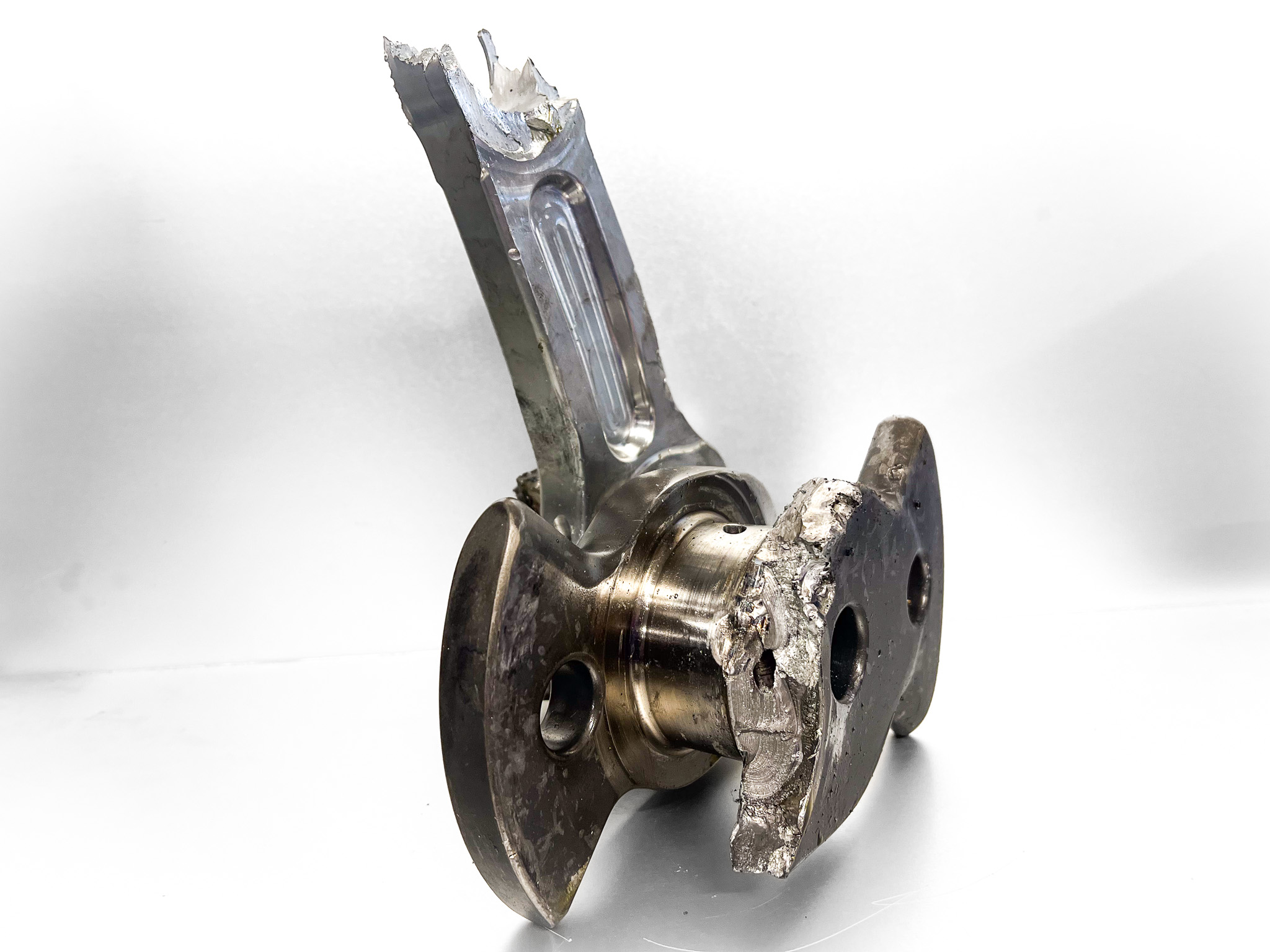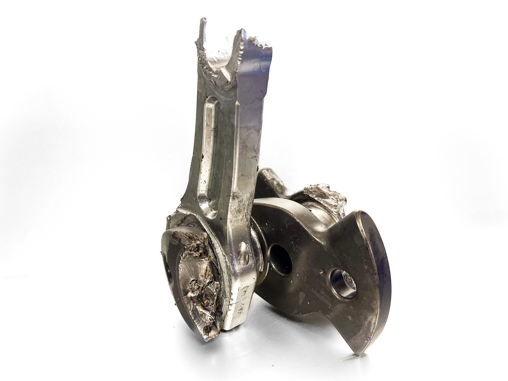 This connecting rod and part of the crankshaft came from our Top Methanol Funny Car, retired after an intense run at the European Finals in 2023.